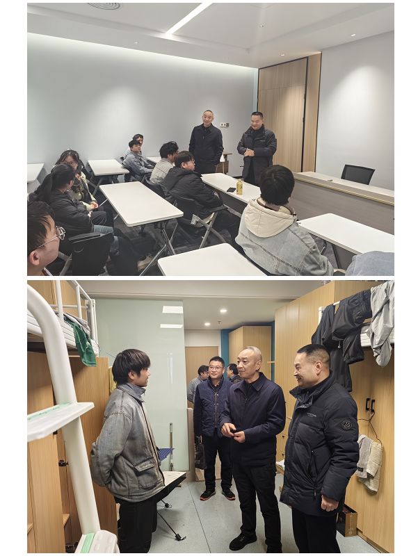 章平一行看望了在企业的实习生,走进员工宿舍了解大家的工作情况、食宿问题和实习感受,鼓励同学们不断提升自己的综合素质和就业竞争力,为实现个人价值和社会价值贡献力量。同学们对于公司和老师的关心,积极发言,备受鼓舞。