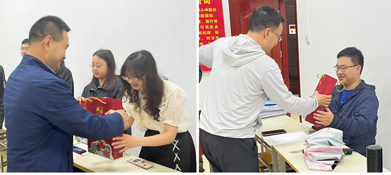 接着,所有老师给毕业生党员发放毕业纪念礼物,充分传递了党组织的关心、希望和鞭策,进一步强化党员的身份意识、宗旨意识和责任意识,希望他们在将来的工作和生活中时刻以党员标准严格要求自己,发挥先锋模范作用。