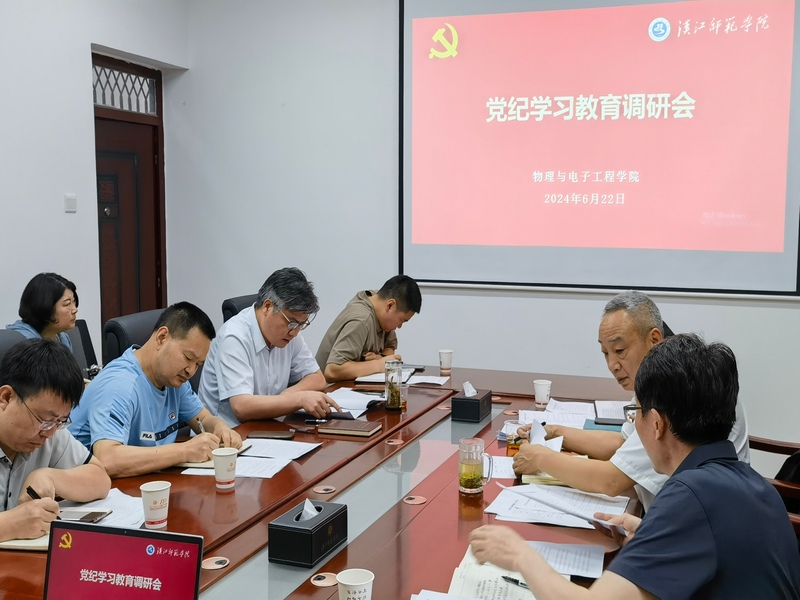 为深入了解物理与电子工程公司党纪学习教育开展情况,6月22日下午,校领导章平、党委统战部副部长王官华、党委组织部干部科科长曾晓东一行3人到304永利集团调研指导,调研会在崇文楼A503会议室举行,公司分党委委员参加调研。会议由院分党委书记唐传球主持。