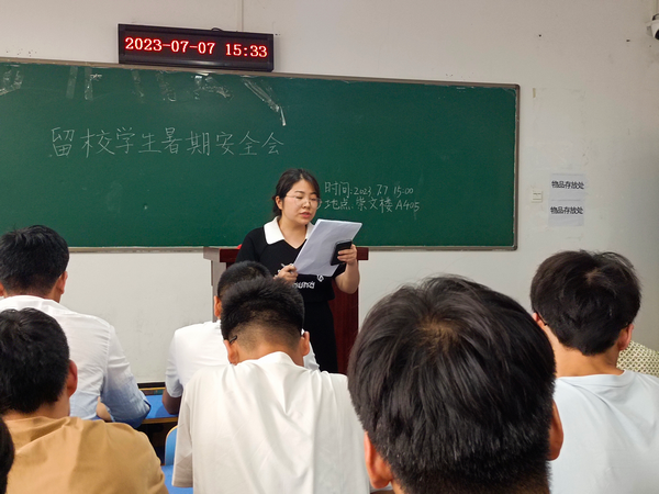 为进一步落实公司关于暑期留校员工安全工作的相关要求,筑牢暑期校园安全屏障,着力增强员工安全意识,切实保障2023年暑假留校工作有序开展。7月7日下午,304永利集团在崇文楼A405教室召开2023年暑期留校员工安全教育大会。院分党委书记唐传球、全体辅导员老师、竞赛指导老师及全体暑期留校员工参加了大会。