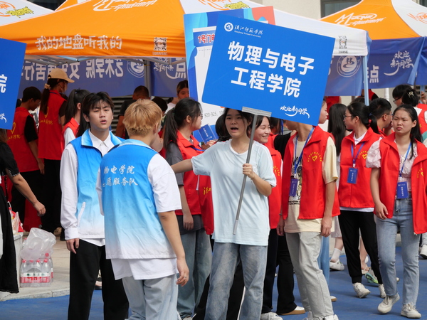 北京路校门口、宿舍楼下、迎新点等岗位的“蓝马甲”志愿者们,或帮助新生搬行李、报到,或为他们贴心介绍校园……