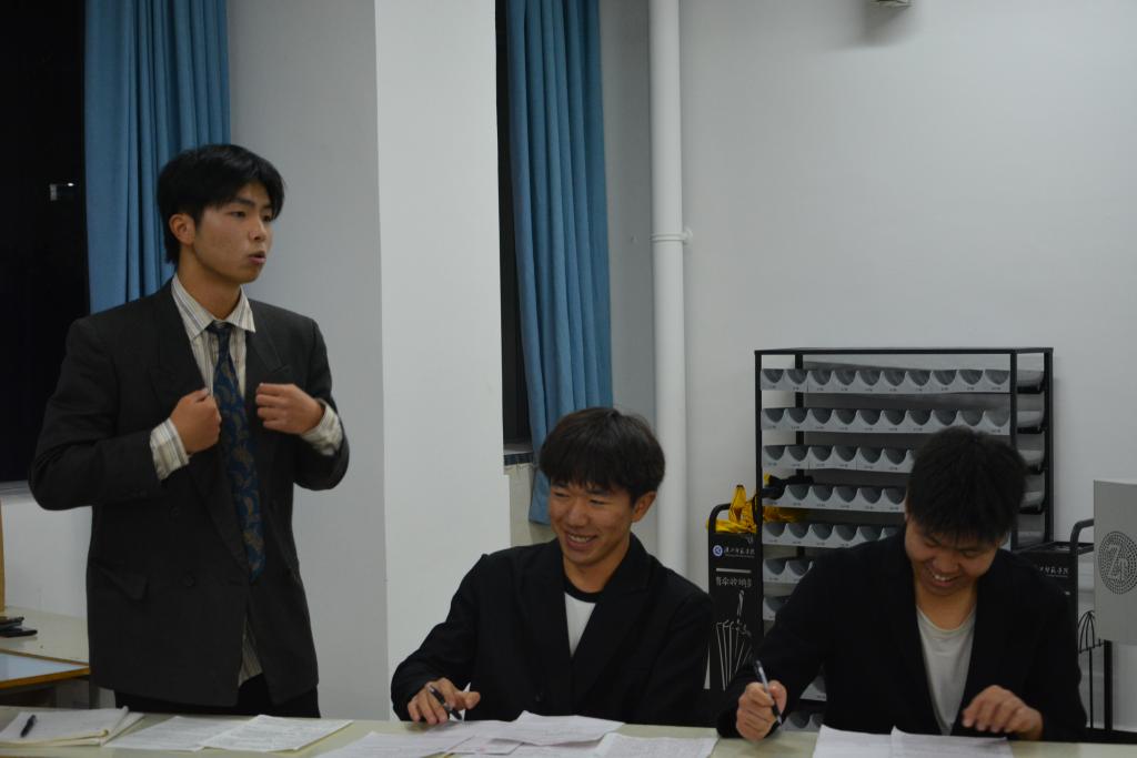 12月3日晚19点,2023年“新生杯”辩论赛决赛在尚艺楼A401举行。辅导员陈秋雨、班主任李娜、辩论协会社长白露清、副社长梁煜萌、辩论协会辩论队队长程锦一、辩论协会辩论队副队长张宇航等应邀担任比赛评委,2023级40名员工现场观看了比赛。