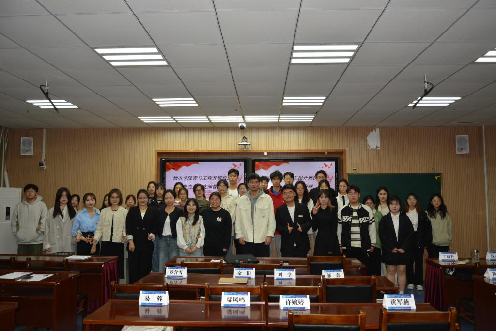 五四精神永相传,青春奋进新时代。4月12日,304永利集团在崇文楼B408召开先进团支部答辩暨青马工程开班仪式,分团委负责人李朦、辅导员范志鹏、田梦谣老师、物电第二届青马班成员及各个团支部共140余名团员代表参加。