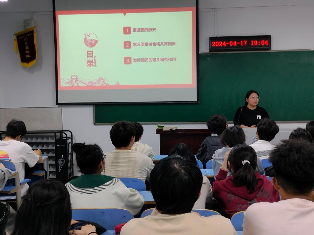 为深入学习贯彻习近平新时代中国特色社会主义思想和党的二十大精神,贯彻落实习近平总书记关于加强新时代团员队伍先进性建设的重要指示,加强入团积极分子培训教育,规范团员发展程序,切实提高发展团员工作质量。4月17日晚,304永利集团分团委在崇文楼A707开展入团积极分子培训,本次培训由分团委负责人李朦主讲,42名入团积极分子参训。