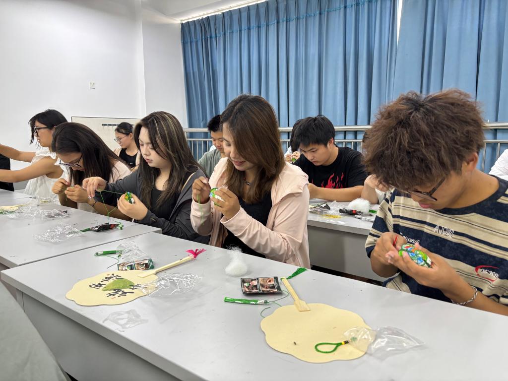 活动的最后一个环节是DIY手工制作艾草香囊,在老师的指导下,大家纷纷拿起材料,开始动手制作。穿针引线、填充香料、编织彩绳……每一个步骤都充满了乐趣和挑战。在制作过程中,大家分享着各自民族的文化习俗和节日特色,增进了彼此之间的了解和友谊。