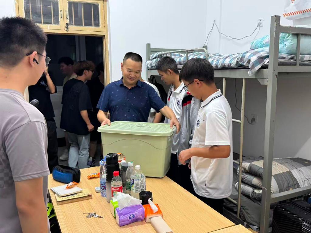 9月7日晚,校领导章平、院领导班子、辅导员和班主任前往宿舍走访慰问2025级新生,为他们送去公司的关怀与温暖。