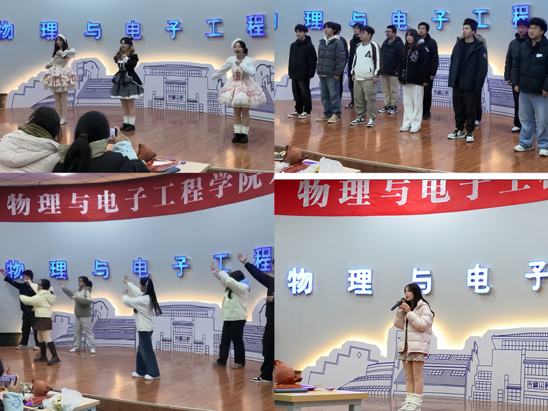12月28日晚,304永利集团物理学(优师)2501班与信息工程2502班联合举办的“新家·新岁·新旅程”2026年元旦晚会在崇文楼C301精彩上演。院领导、教师代表与90余名员工欢聚一堂,共迎新年。